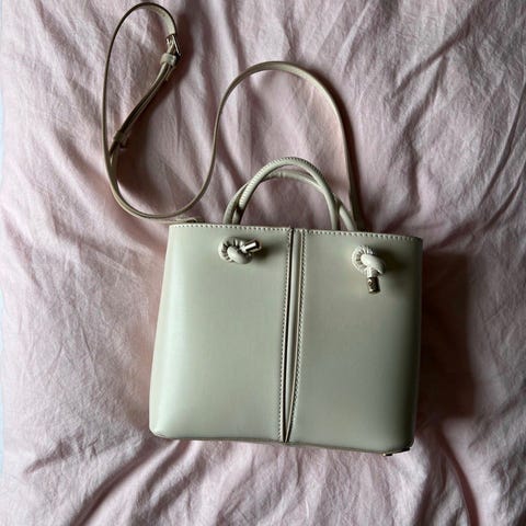 En innvending liten lomme og vesken lukkes med glidelås. Brukt kun ved 2-3 anledninger.
