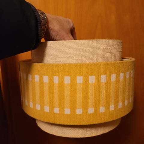 Baldakin / takoppheng til 5 stk. lamper. For montering i tak. 55cm i diameter og 2,5cm dybde/høyde. Dette er baldakinen til lampen "Stone Field Carmen" fra Lampehuset. Helt ny og ubrukt. Plastfolien er fremdeles på. Farge gull med sorte detaljer. (Vi har montert de 5 lampene over på en annen hjemmelaget baldakin. Lamper og ledninger følger dermed ikke med. Men festene til lampeledningene følger med.)