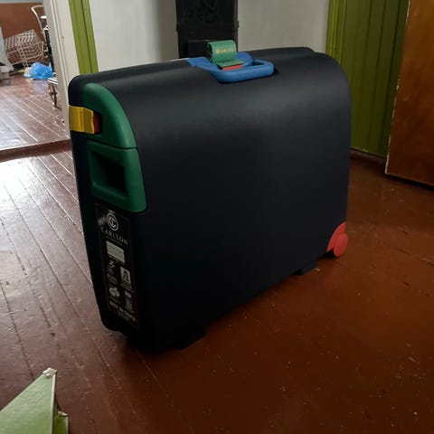 Carlton koffertsett i stoff, bestående av to kofferter i rød farge. Stor koffert til langrnturer og en kabinkoffert.