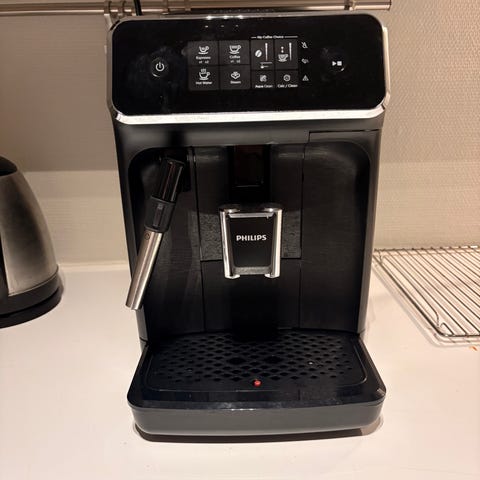 Philips EP3243 kaffemaskin med berøringsskjerm, hvit farge og kapasitet for forskjellige kaffetyper. Maskinen har en effekt på 1500 W og kan tilberede cappuccino, latte macchiato, espresso og andre kaffedrikker. Utstyrt med melkeskummer og justerbare innstillinger for personlig tilpasning av kaffe.
