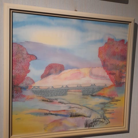 Merk: Kunstverket er skjørt og kan ta skade dersom det mistes i gulvet eller utsettes for støt. Håndteres med forsiktighet.