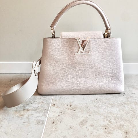 Nesten ny Limited Edition Capucines med nydelige blomster detaljer. Ikke mulig å få tak i siden disse ble produsert i en veldig begrenset mengde i 2019. Alt er av skinn, innvendig og utvendig.