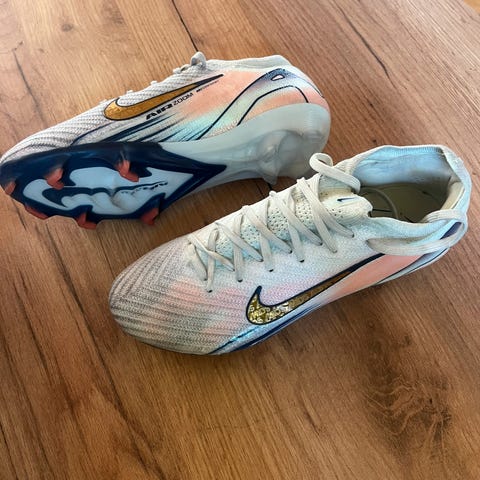 Nike Vapor Edge fotballsko i størrelse 38 i lilla farge. Fine knotter for godt grep på banen. Materialet er pustende og fleksibelt for komfort og bevegelsesfrihet. Sokken på skoene er kuttet av i et forsøk på å få de til å passe:)