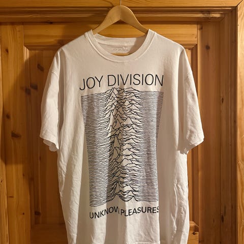 Ny uten tags Joy Division Uknown pleasures hvit oversized T-skjorte, størrelse small herre, vil tilsvare en medium - large kvinne. T-skjorten har en gul flekk i kragen, har ikke prøvd å vaske den bort