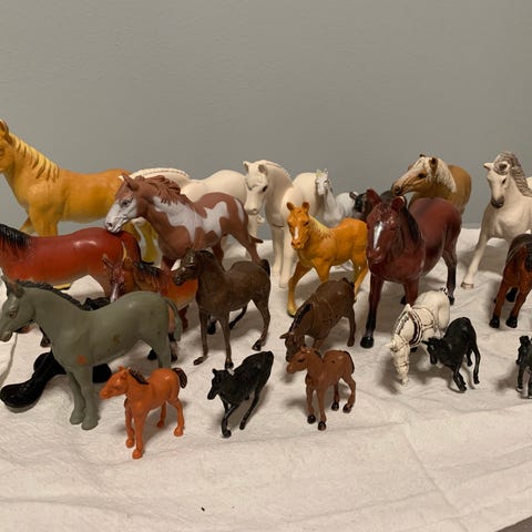 Samling av ulike Schleich hestemodeller. Modeller i forskjellige farger og størrelser, inkludert føll og voksne hester. Egnet til samling eller lek.