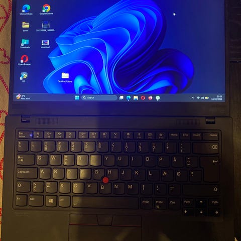Maskinen bærer preg av bruk. Den har merker på skjerm som ikke er så tydelige under bruk og har i tillegg fått en liten skade ved hjørnet etter å ha falt ut av sofaen. Se bilder! Batteriene virker fortsatt helt greit og denne er nyinstallert med Windows 11 Pro.