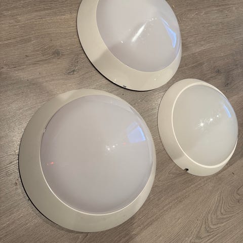 2 tak / vegglamper en hvit og en sølv, innebygd romføler