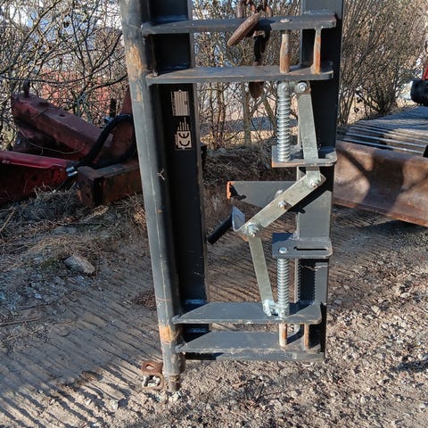Lite brukt hydraulisk pallegaffel med hydraulisk sideforsyving. Dette er en pallevogn som har stått på en truck og ombygd til SMS/Trima feste. Dette er en pallegaffel som tåler vesentlig mer enn en som er laget for traktor. Smidde gafler. Både hydraulisk gaffelbredding og sideforskyving er helt fantastisk når en skal stable noe med en traktor. Bredde 110 cm. Det er grind som er festet med 4 skruer og kan demonteres. For flere opplysninger så treffes jeg på tlf 90981298