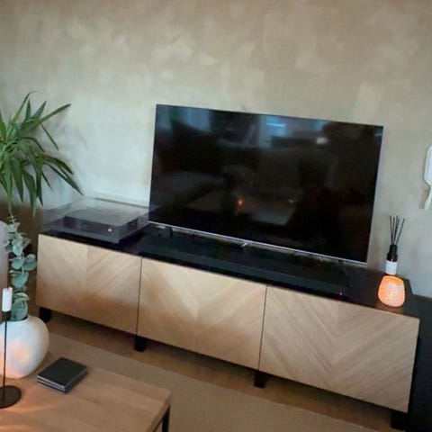 Tv benk fra IKEA i serien bestå. Brunsvart med mønster på fronter. Pent brukt. Kjøpt i 2022. Stått lagret på soverom nå i 1år ca. Se bilder lånt fra IKEA mtp mål.