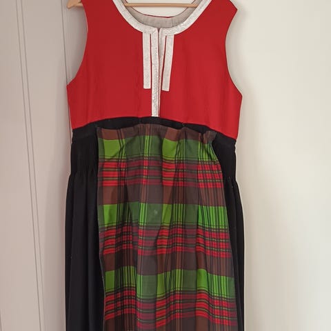 Umontert bringeduk. Følger med nummer på farger som er brukt dersom det er ønskelig å brodere belte. Brodert i korssting. Kjøper betaler evt frakt