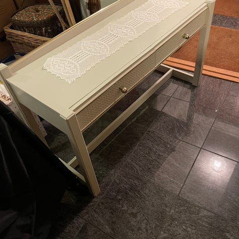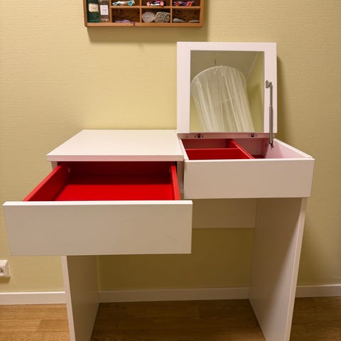 Godt brukt. Topplate ligger løst. Skuffen er vanskelig å få ren inni, grunnet sminke.