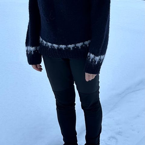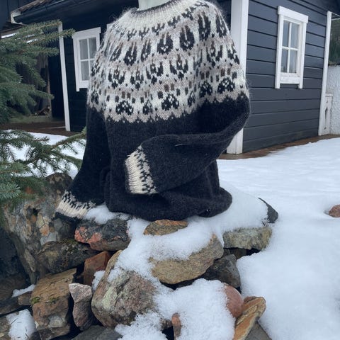 Monark genser som Stine hadde på Fjellhytta 🏔️ Håndstrikket & ubrukt 🧶 Garn: Sandnes merinoull, hel lengde 70cm, overvidde 112cm, armlengde 50cm (modell 171cm høy). Garnkostnad: kr 1500,-