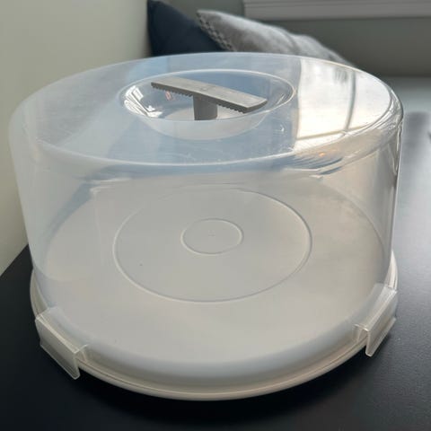 Flott boks til oppbevaring av kake . Flott til å bringe rundt omkring pga håndtaket . Selges for 250 kr . Kan sendes med post nord for 130 kr eller posten for 135 kr eller fiks ferdig . Eller kan hentes etter avtale .