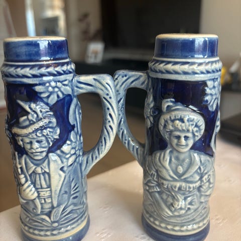 Fin salt- og pepperbøsse i krystall med blå emalje på sølv! Pusses enda blankere før overtakelse.