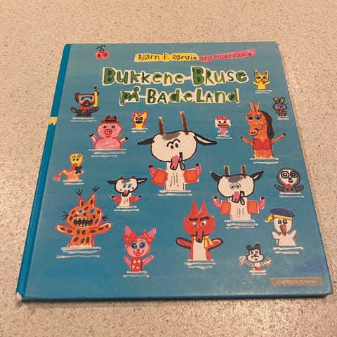Bukkene Bruse på Badeland barnebok med fargerike illustrasjoner. Boken inneholder historier om Bukkene Bruse og deres opplevelser i Badeland. Passer for barn og inneholder tekst og bilder som støtter lesing og forståelse. Selges for 100 kr kan sendes med post nord for 70 kr eller fiks ferdig eller kan hentes etter avtale .