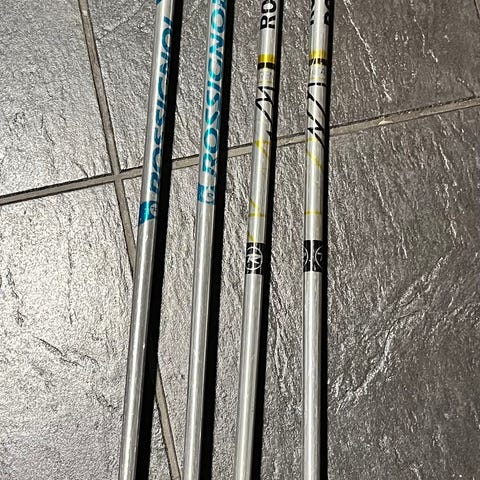 Kan selges samlet eller hver for seg. Stavene er signerte av Aksel Lund Svindal. 300 kr for ski og 175 kr for staver, eller alt for 400.