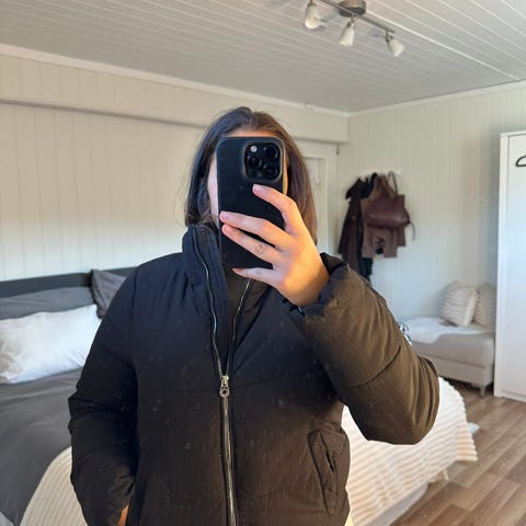 ONLY Vinterjakke for kvinner i størrelse M. Jakken er svart og laget av polyester. Den har en lang modell med hette og glidelås foran. Jakken er designet for å gi varme i kaldt vær.
