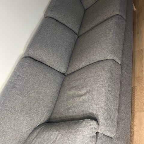 Veldig pent brukt 3 seter sofa i moderne design+ puff selges for kun 3500kr da vi har kjøpt større sofa. Sofaen er brukt i et knapt år og har ingen skader eller flekker