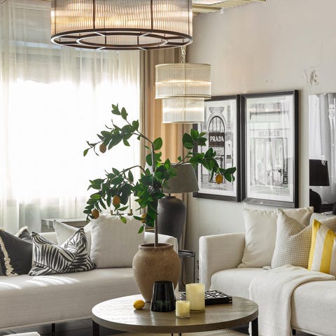 Størrelse: Høyde 69 cm, bredde 230 cm, dybde 87 cm, sittehøyde 42 cm, sittedybde 63 cm, sittebredde 182 cm, armlenehøyde 63 cm. Frihøyde under sofa er 18 cm.