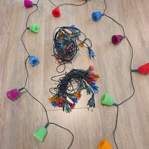 Fine lyslenker, den ene er utgått på IKEA, med blanke og røde figurer. Den andre er flerfarget. Begge to er helt fine og fungerer som det skal. Uten original eske. Pris pr stk 165.-