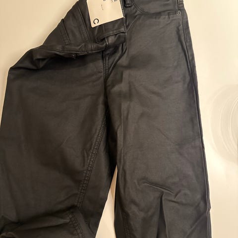 Cubus Jane Skinny bukser i størrelse M for dame. Bukser i svart skinnmateriale med elastiske egenskaper. Designet med smal passform.