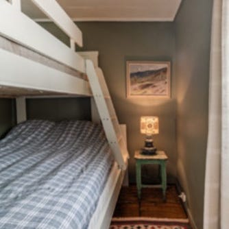 Køyeseng som er bredere i bunn. Ca 130. 90 cm øverst.
