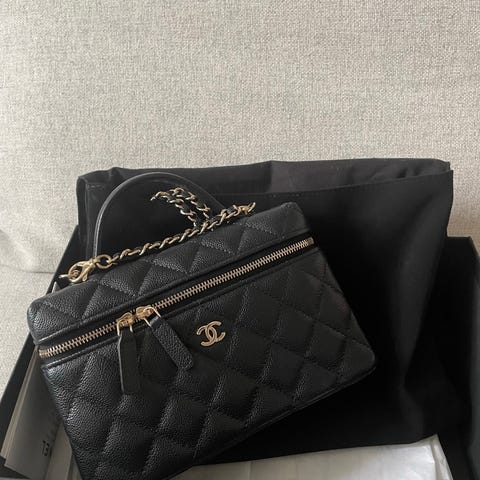 Selger en fantastisk Chanel Vanity bag i en sjelden og unik sesongfarge, mørk beige, en nyanse som ikke kommer tilbake i butikk. Kjøpt 28.11.2025 fra Chanel butikken i Oslo. Plastikken er fortsatt på.
