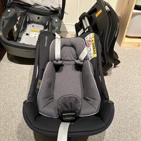 Svært pent brukt Maxi-Cosi Coral 360 selges med base! Aldri vært i så mye som en bulk eller kastet opp/bæsjet i. Nypris rundt 6.600.