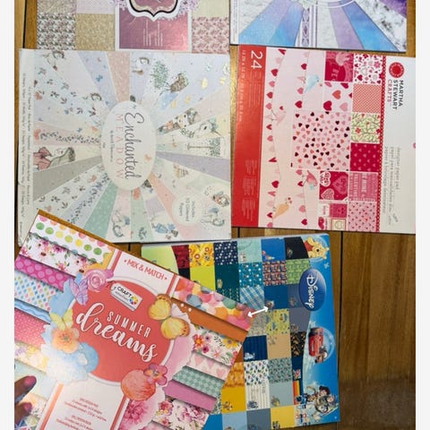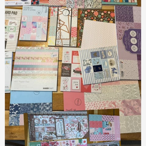 2 mini papirblokker med nydelige ark som er flotte til kortlaging, scrapbooking, junk journals, osv. Se bildene. Det er 2 stk og prisen er for begge to samlet.