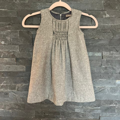 Mini Rodini Ull 🤎kjole i størrelse 104 for jenter. Kjolen er brun og laget av ullmateriale. Den har knappelukking bak og en krage foran. Designet er uten ermer, med et plissért skjørt. Kjempe fint ull kjole👑👧🤎🐑🐑🐑!!!