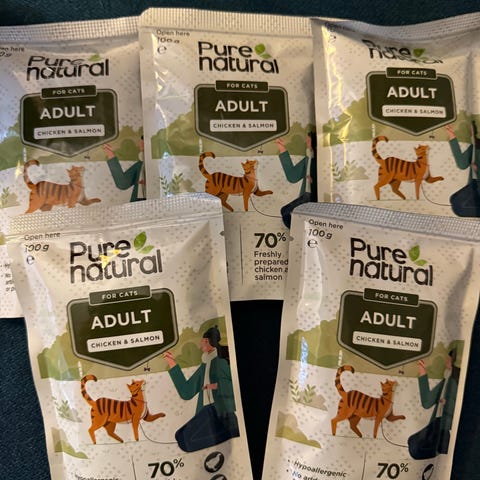 Iamso kattefôr med ocean fish, to åpnede pakker, ca 6-7kg i den ene og 1 kg i den andre, selges samlet.