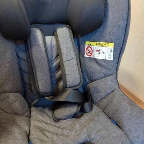 Jeg er veldig fornøyd med den men tar litt plass i bilen vår da vi kjører en liten Nissan leaf. Så trenger litt mindre sete. Fortsatt masse bruk igjen. Følger med sånne belter til å ha under sete foran for å stramme sete ordentlig godt,
