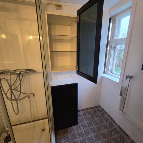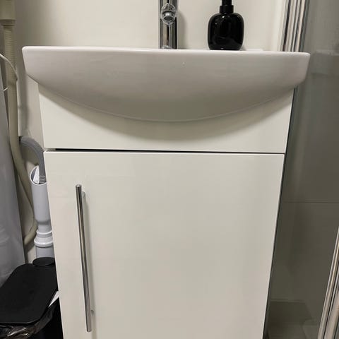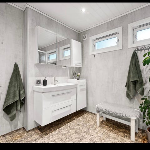 Baderomsmøbel sett med speil og skap i hvitt