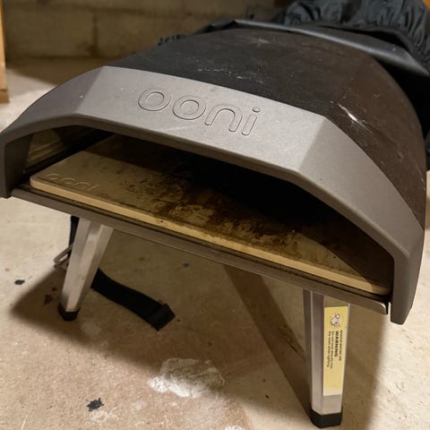 Ooni Pizzaspade i grått og svart, laget av slitesterkt materiale. Designet for enkel håndtering av pizza, med hull for luftgjennomstrømning. Egnet for bruk med Ooni pizzaovner.