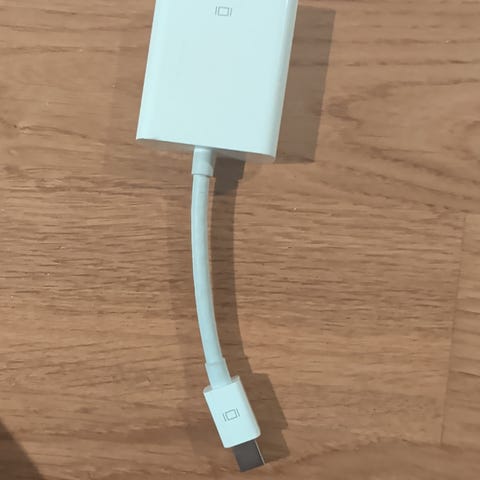 Apple Mini DisplayPort til VGA-adapter i hvit farge. Adapteren brukes til å koble enheter med Mini DisplayPort-utgang til skjermer eller projektorer med VGA-inngang.