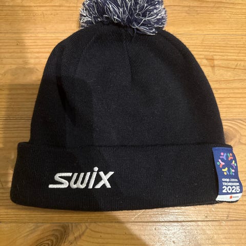 Helt ny og ubrukt Swix lue fra Ski-VM Trondheim 2025. One size, med dusk. Offisiell VM-lue, fortsatt med merkelapper på. Perfekt for samler eller vinterbruk.