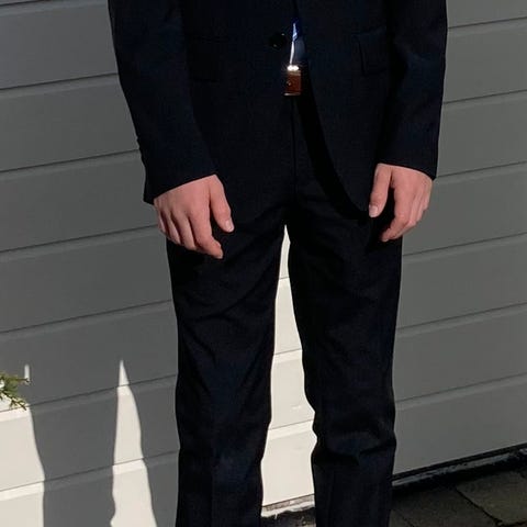 Selger denne konfirmantdressen fra Frislid da den ikke passer meg lenger. Den er av ull i høy kvalitet. Dressen er i str 50, men siden dette er en konfirmantdress vil den passe bedre til rundt str 48. Tipper denne passer bra for alt fra 175cm til 190cm. Buksene har blitt lagt ned så langt som mulig, men kan legges opp på Follestad ved ønske. Gjerne send melding om du er interessert eller lurer på noe :)