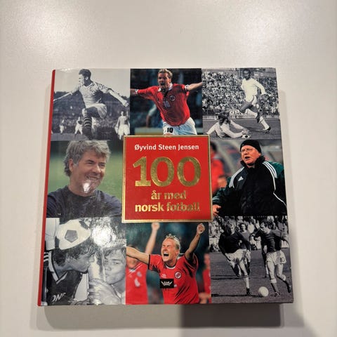 Øyvind Steen Jensen 100 år med norsk fotball bok som dokumenterer norsk fotballhistorie gjennom 100 år. Inneholder bilder og tekst som beskriver viktige hendelser, personer og utviklingen av sporten i Norge. Utgitt av N.W. Damm & Søn.