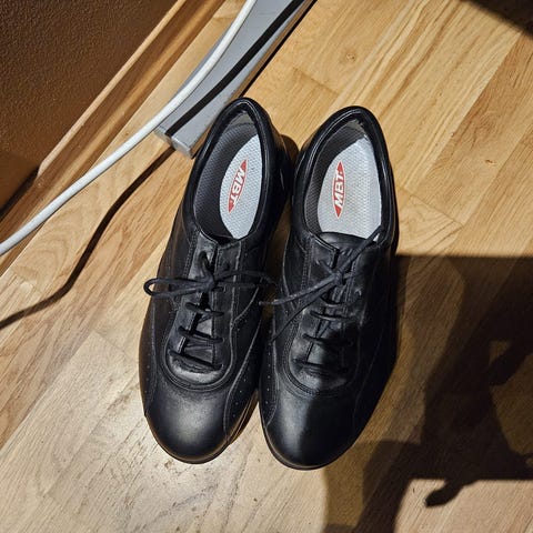 MBT - Masai-sko i størrelse 38. Skoene er svarte og laget med materialer som gir komfort og støtte. Egnet for allmenn bruk.