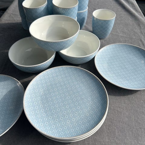 Original Walther Glass - Collection Sieberstern serveringssett selges. Noen små bruksmerker på to tallerkener og fat, men fremstår ellers som ubrukt.