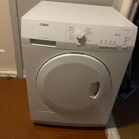 AEG Kondens tørketrommel. Hvit farge. Kondensmodell for tørking av klær uten behov for ekstern ventilasjon.