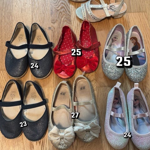 Pensko til jente i str 21. Har noe slitasje i stoffet, særlig på tuppen av skoa, men mye bruk igjen. Tenkte selv å bruke de denne jula, men de ble for små.