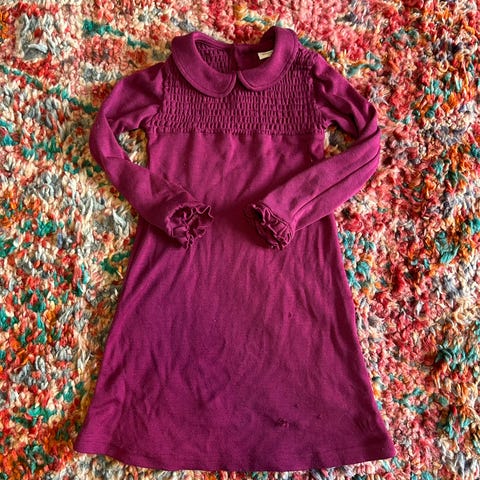 Strikket barn kjole 110 cm lilla merinoull til 👧 .