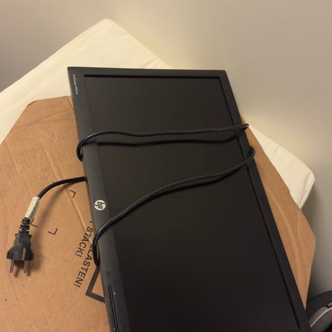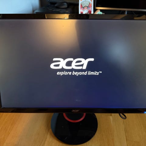 Acer 24" skjerm med svart ramme og rund svart og rød base. Skjermen har en størrelse på 24 tommer.