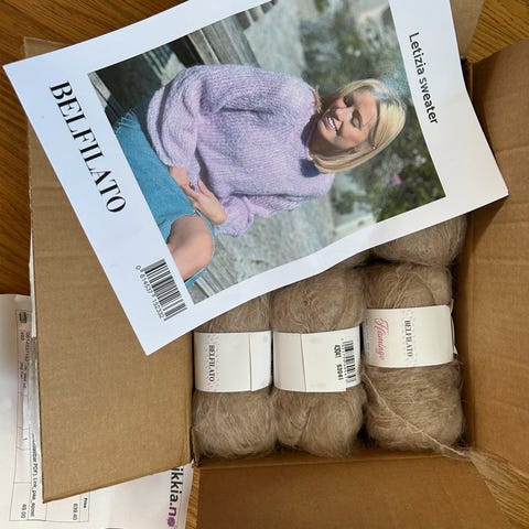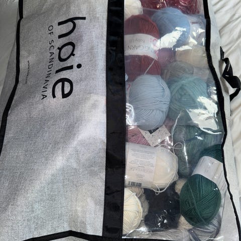 Selger strikkepakke med oppskrift og garn til kjole i str xs av Tjøme kjole, av Mie Mack Cappelen og Viking garn. Pakken inneholder 17 nøster med Viking Bjørk garn, som består av 50% bomull og 50% bambus. Garnet er i lys lilla (567). Selges fordi jeg ikke får tid til å strikke den likevel. Nypris for garnpakken er 983,- hos Strikkemekka f.eks