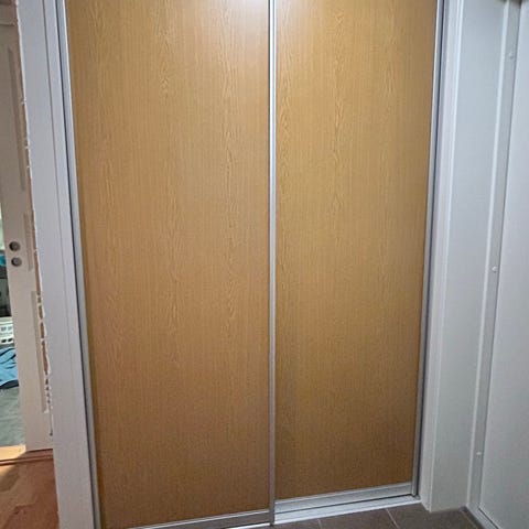 Pent brukte. 2 stk. Skinner for gulv og tak følger med. Skinnene er ca. 148-149 cm lange.
