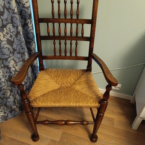 Vintage husmorstol/ krakk, praktisk når en trenger å gå opp i høye skap. Veldig fint behandlet. Fin blå farge. Denne finnes det ikke mange eksemplarer igjen av lenger. Norsk produsert. Høyde 59 cm.