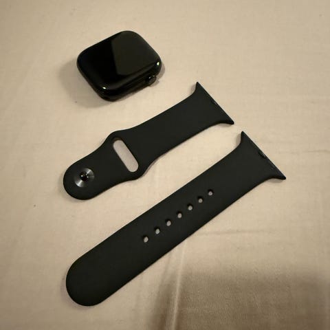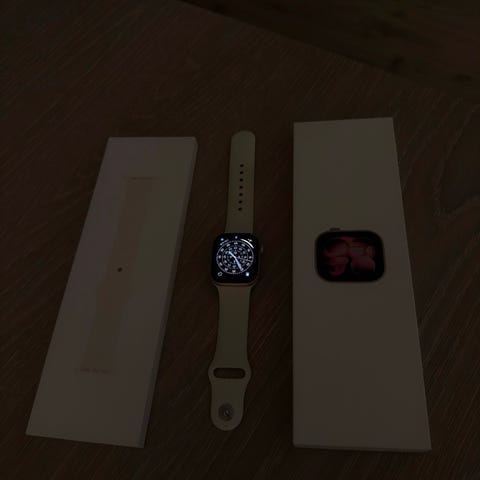 Apple Watch Series 11 gps 42 mm smartklokke i rosa gull med rosa sportrem. Inkluderer original emballasje og ekstra remmer i forskjellige farger og materialer.