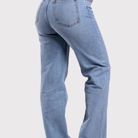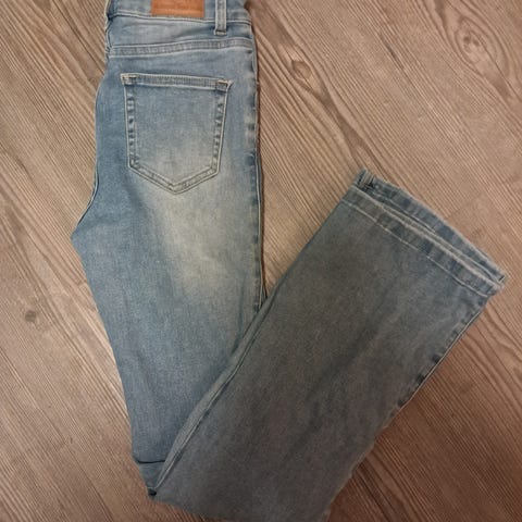 Jeansen er lys blå, og modellen heter Light Blue - straight leg.