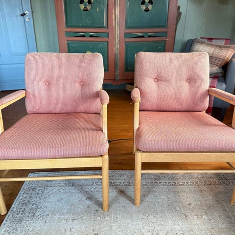Ønsker å kjøpe 2 lenestoler med krakk. Merke Vatne, modell nr 109, med krakk.
